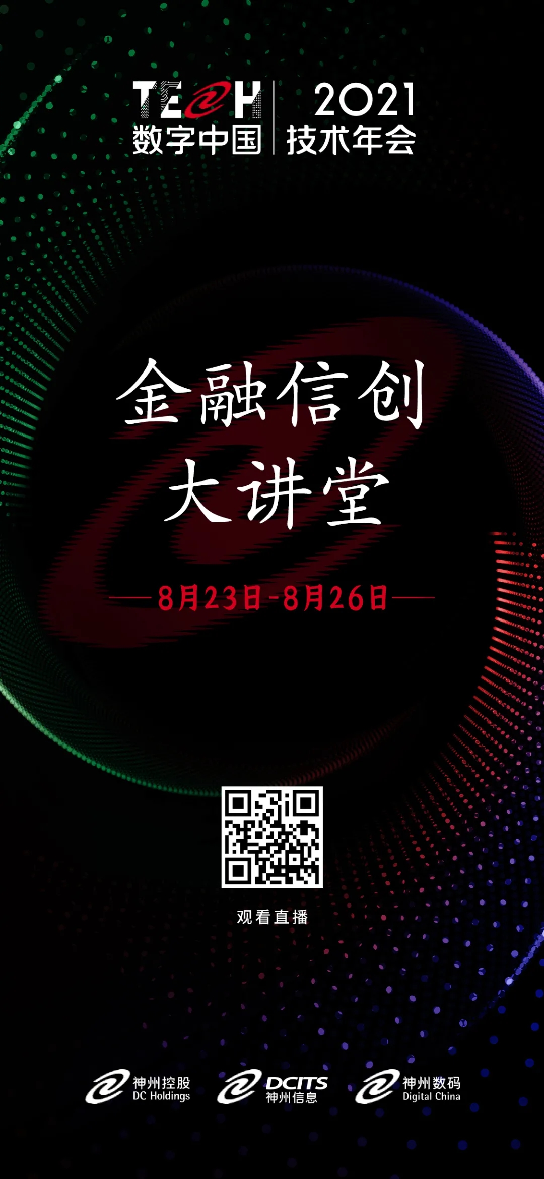 TECH数字中国2021技术年会 | 金融信创大讲堂,今晚7:30不见不散