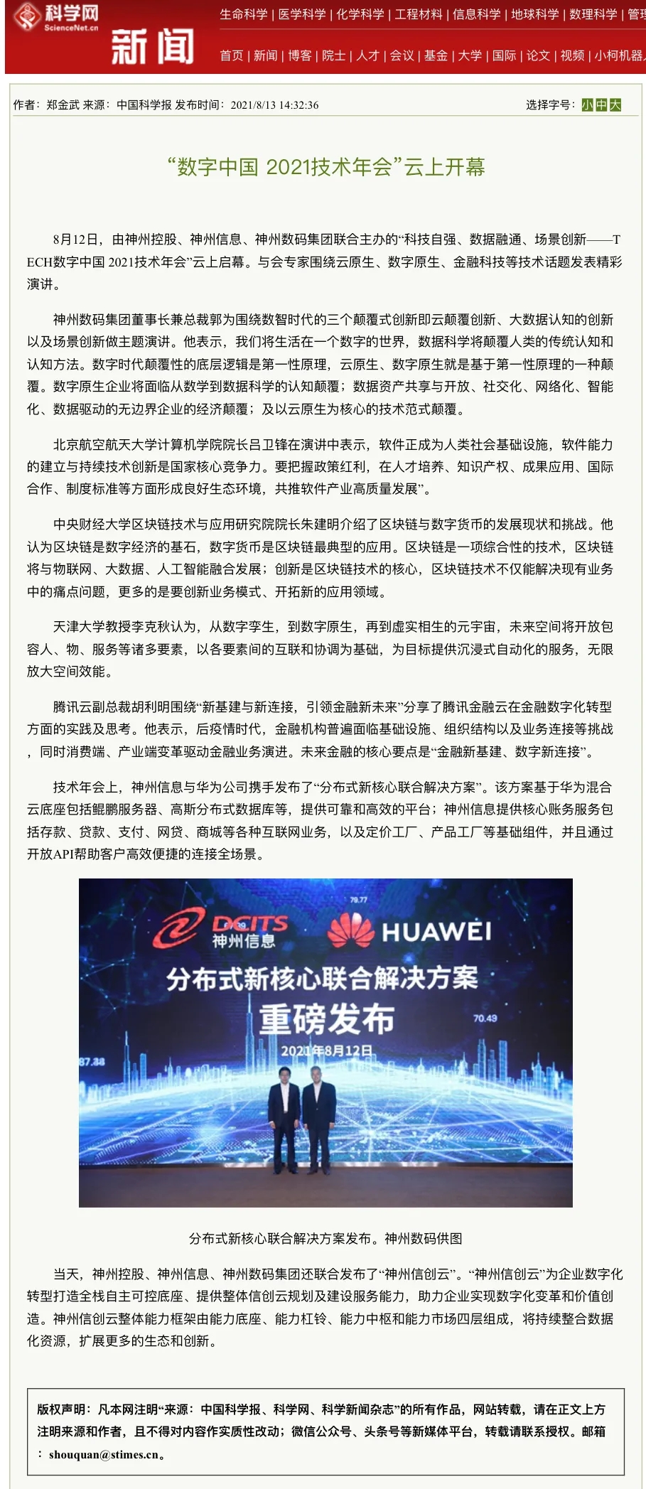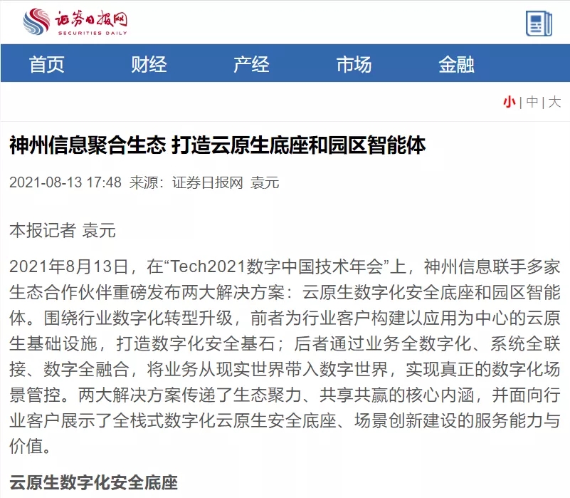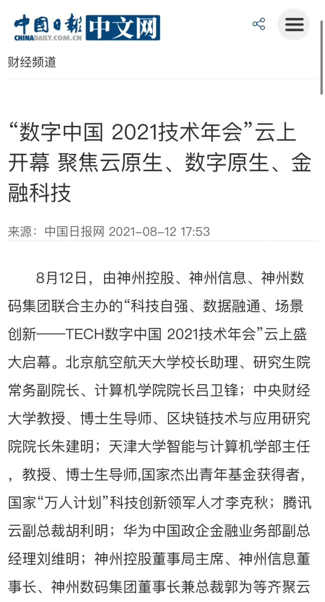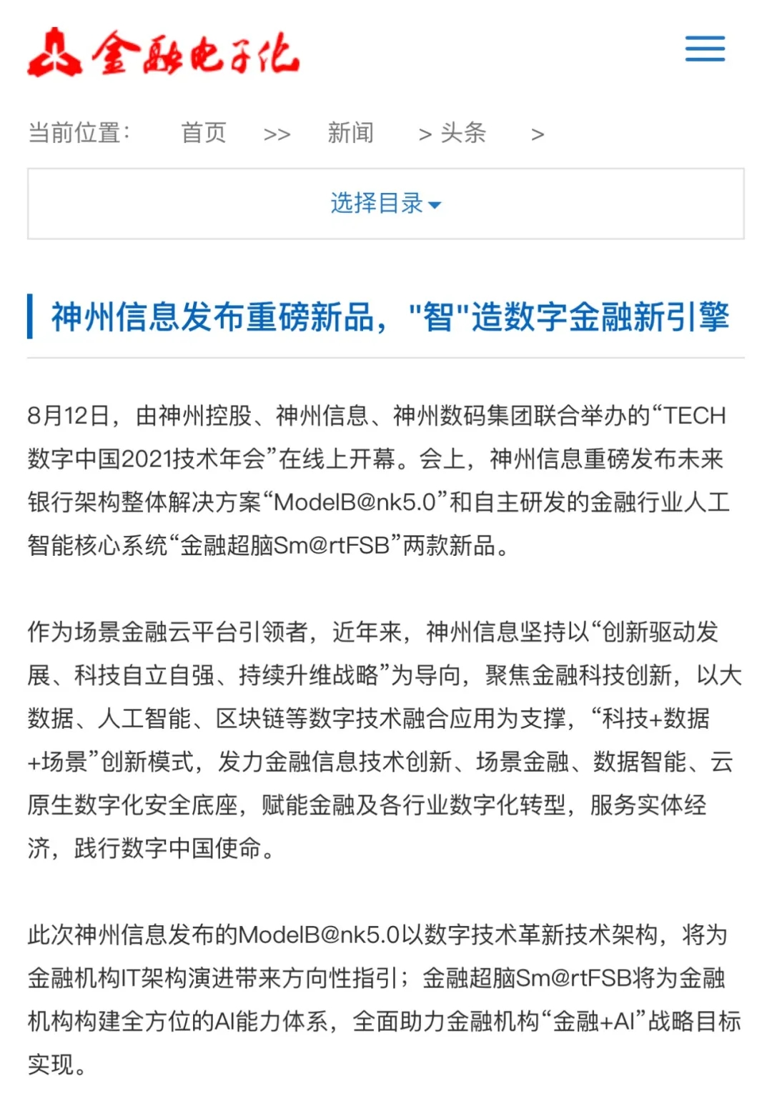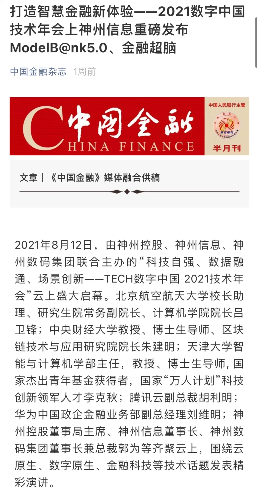 8月12日,由南宫28控股、南宫28信息、南宫28数码集团联合主办的“科技自强、数据融通、场景创新——TECH数字中国 2021技术年会”云上盛大启幕,发布南宫28信创云、ModelB@nk5.0、金融超脑Sm@rtFSB、云原生数字化安全底座、园区智能体等重磅产品,国内各大权威、影响力媒体多角度多频次对盛况进行报道!