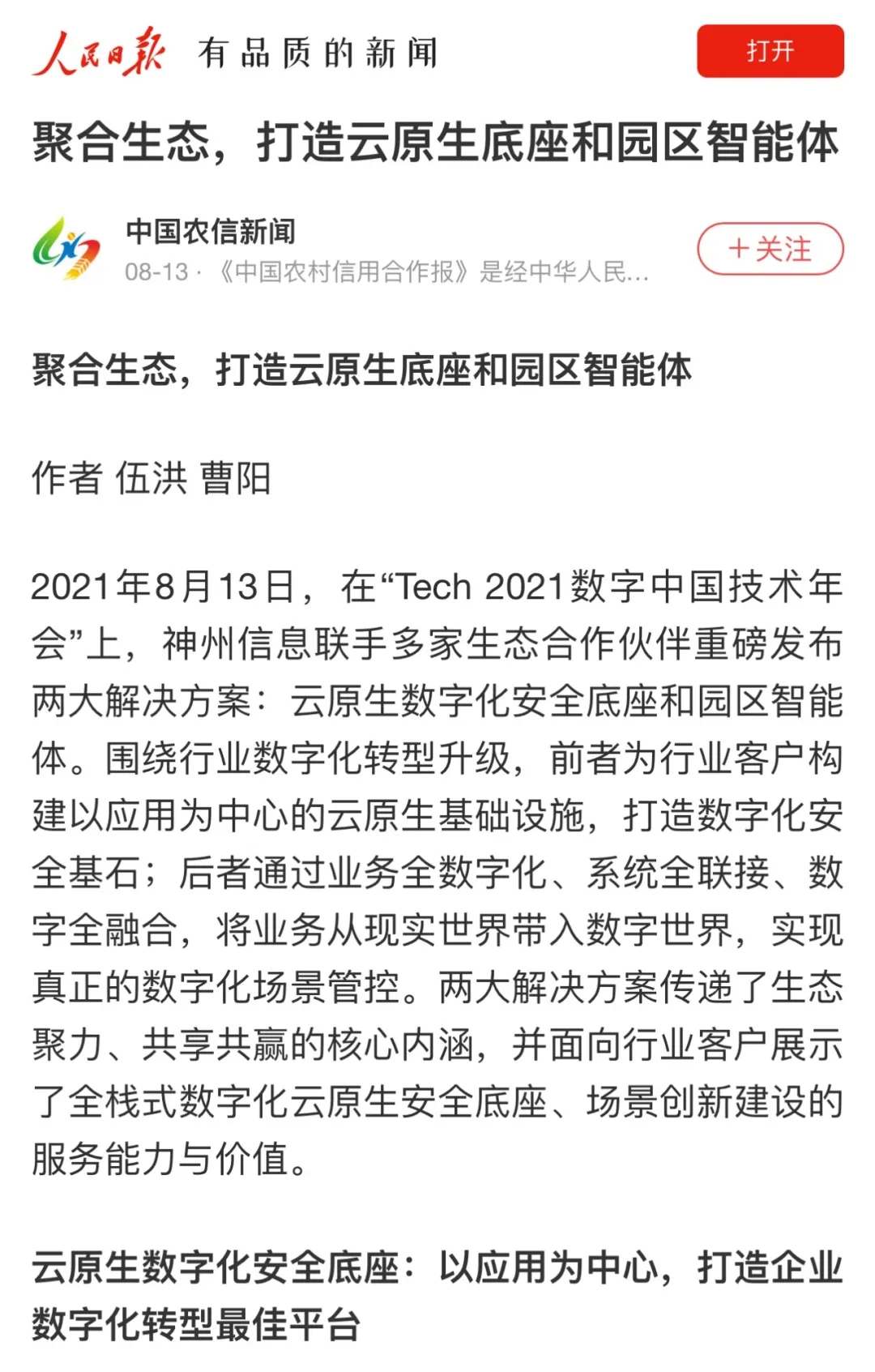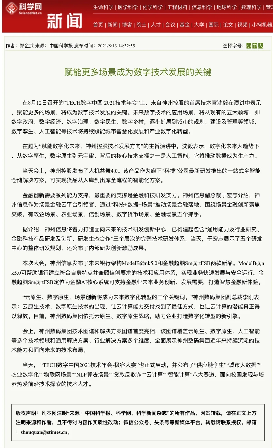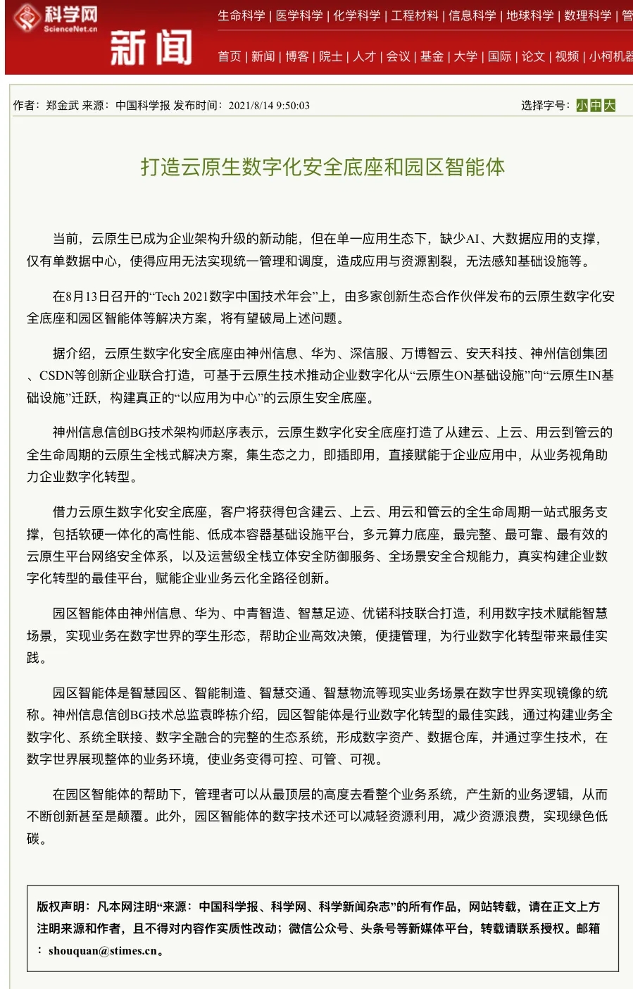 8月12日,由南宫28控股、南宫28信息、南宫28数码集团联合主办的“科技自强、数据融通、场景创新——TECH数字中国 2021技术年会”云上盛大启幕,发布南宫28信创云、ModelB@nk5.0、金融超脑Sm@rtFSB、云原生数字化安全底座、园区智能体等重磅产品,国内各大权威、影响力媒体多角度多频次对盛况进行报道!
